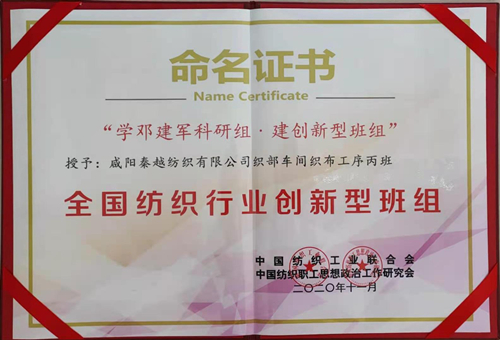 本次會(huì)議上,集團(tuán)公司共有五個(gè)先進(jìn)班組和兩個(gè)先進(jìn)個(gè)人榮獲殊榮,分別是:一分廠織部車間質(zhì)量組、二分廠紡部車間細(xì)紗工序乙班三組、子公司秦越紡織織部車間織布工序丙班榮獲“全國(guó)紡織行業(yè)創(chuàng)新型班組”榮譽(yù)稱號(hào);一分廠織部車間質(zhì)量組、二分廠織部車間織布工序甲班一組、子公司秦越紡織織部車間織布工序甲班榮獲“2020年陜西省紡織行業(yè)‘趙夢(mèng)桃小組式先進(jìn)班組’”榮譽(yù)稱號(hào);二分廠織部車間指導(dǎo)工趙莉絨(女)、子公司秦越紡織紡部車間梳棉保全工嚴(yán)鴿榮獲“2020年陜西省紡織行業(yè)‘夢(mèng)桃式最美奮斗者’”榮譽(yù)稱號(hào)。集團(tuán)公司向獲得表彰的先進(jìn)班組和個(gè)人表示熱烈的祝賀!