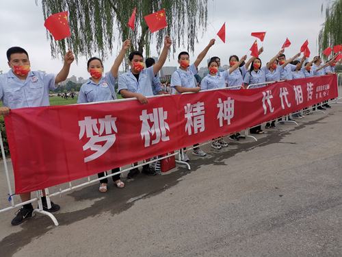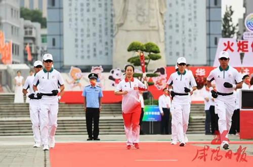 咸陽紡織集團組織干部職工助力十四運會和殘?zhí)貖W會火炬?zhèn)鬟f