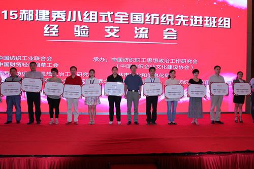 近日,中國紡織工業(yè)聯(lián)合會在陜西省榆林市召開了 2015 中國紡織十大品牌文化推介大會暨郝建秀小組式全國紡織先進班組經驗交流會,來自全國各省、市的紡織行業(yè)協(xié)會、中紡政研會會員單位以及被授予郝建秀小組式全國紡織先進班組的代表二百余人參加了會議。 會上推介和展示了2015中國紡織十大品牌文化成果,舉辦了紡織服裝品牌文化論壇,授予了我集團公司一分廠“織布工序丙班三組”等43個班組為郝建秀小組式全國紡織先進班組稱號。集團公司一分廠丙班三組組長王鋒義代表該小組參加了會議并受到表彰。